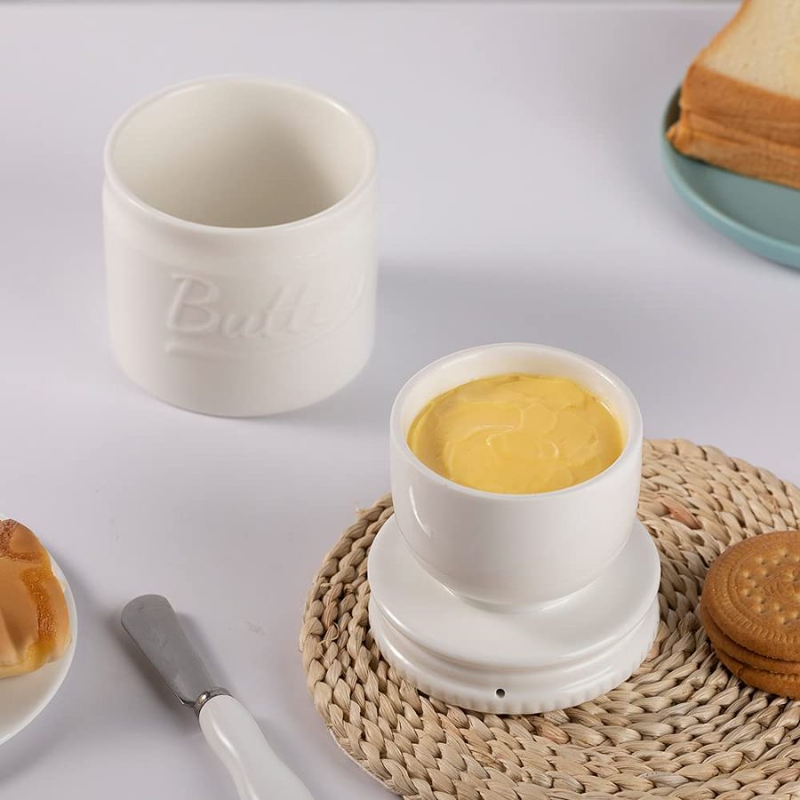 Disfruta de la mantequilla fresca para untar en cualquier momento: no más mantequilla fría del refrigerador. Puedes disfrutar de la mantequilla perfecta a temperatura ambiente por la mañana sin preocuparte por ensuciar el plato. El agua crea un sello hermético que conserva la frescura de la mantequilla mientras la mantiene a temperatura ambiente.