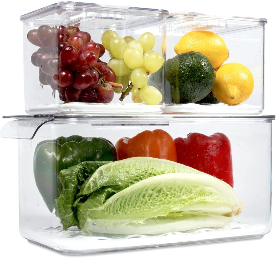 Cuentan con ventana de ventilación ajustable integrada que proporcionará flujo de aire para efectos duraderos. Con la ventilación abierta para frutas más frescas. Con la ventilación cerrada para verduras más frescas. Tapa a prueba de polvo con un práctico asa para una fácil accesibilidad. El drenaje extraíble en la parte inferior del recipiente permitirá que toda la condensación del agua caiga al fondo, lo que permite que los alimentos duren más tiempo. No más productos empapados debido a la humedad.